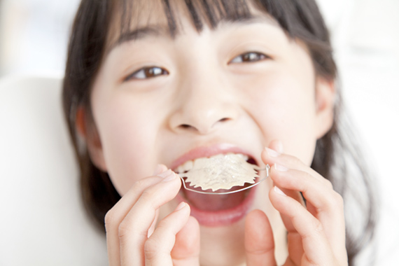 お子さんのペースに合わせて矯正装置を装着し、歯並びや顎のバランスを整えていきます。治療中も、丁寧な説明とフォローを行いながら進めていきます。