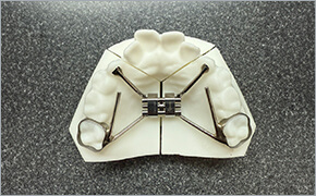 上あごの中央にある骨の継ぎ目(正中口蓋縫合)を広げ、短期間で顎の幅を広げるための固定式の装置です。永久歯が生えるスペースを確保し、歯並びや噛み合わせの乱れを改善することを目的としています。呼吸や発音のしやすさにもつながり、成長期に行うことで骨格全体のバランスを整えやすくなるという利点があります。